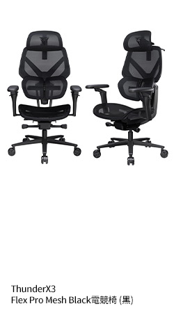 ThunderX3 Flex Pro Mesh Black 電競椅 (黑)/網布/2D調節頭枕/3D調節椅背/5D扶手