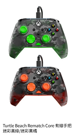 Turtle Beach Rematch Core 有線手把 迷彩黑橘/專利音訊控制/人體工學/雙震動馬達/脈衝板機
