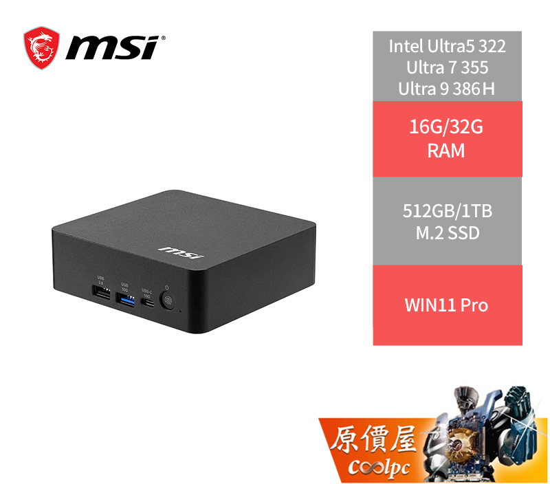 【預】MSI CUBI NUC AI+ 3MG【009TW】Intel Core Ultra 9 386H / 32G / 1TB / WIN11 Pro $49900>蝦皮商城>官網