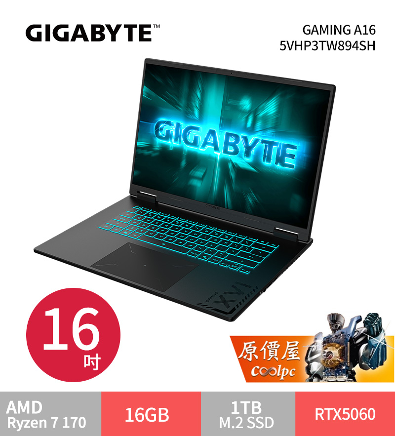 技嘉 GAMING A16 Ryzen 7 170/RTX5060/16G/1T/16吋 黑 5VHP3TW894SH $45900>蝦皮商城>官網