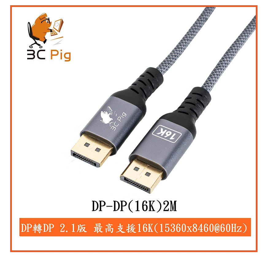 3C Pig【DP-DP(16K)2M】DP 2.1版 公-公 / 最高可達 15360*8460 (60Hz) / 3米 $599>蝦皮商城>官網