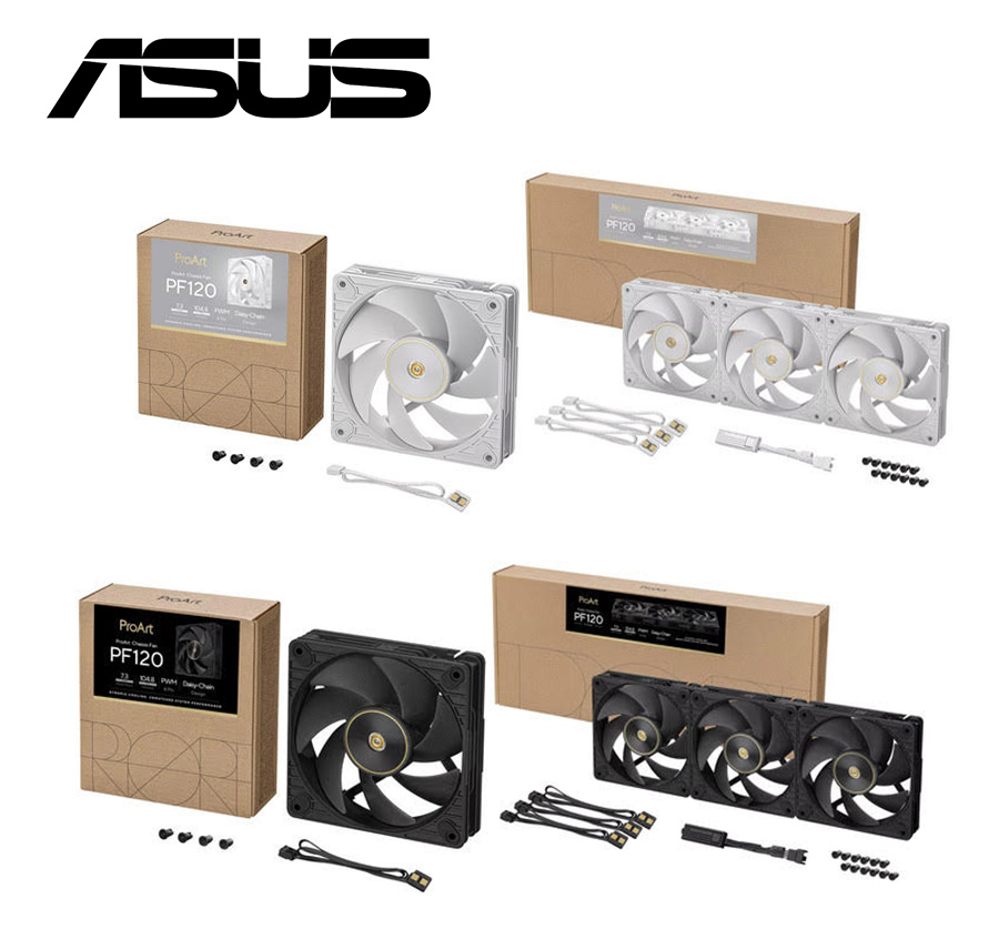 華碩 ProArt PF120(白) 效能扇/三顆裝/厚28mm/LCP扇葉/獨家串接頭/轉速控制器/5年保 $2590>蝦皮商城>官網
