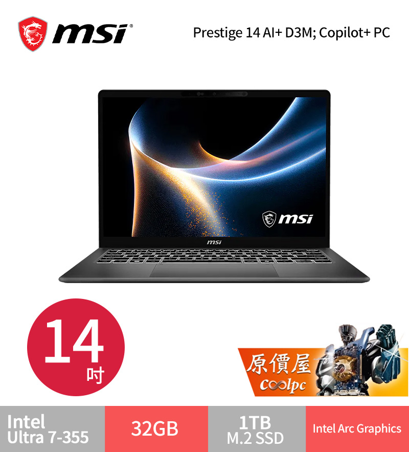 微星 Prestige 14 AI+ D3M; Copilot+ PC AI筆電