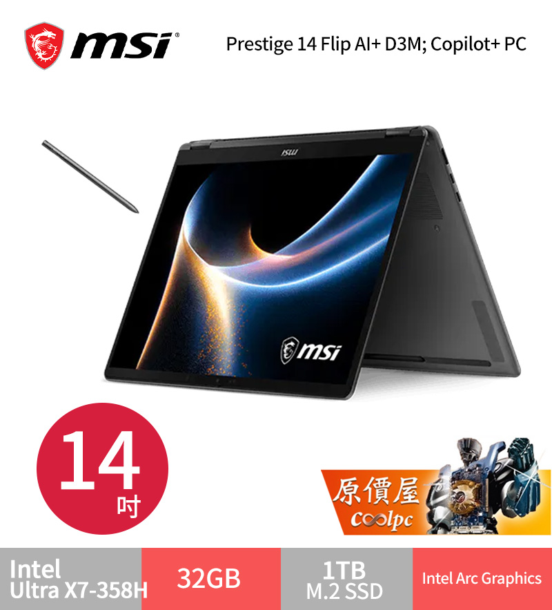 MSI Prestige 14 Flip AI+ D3M; Copilot+ PC AI翻轉筆電