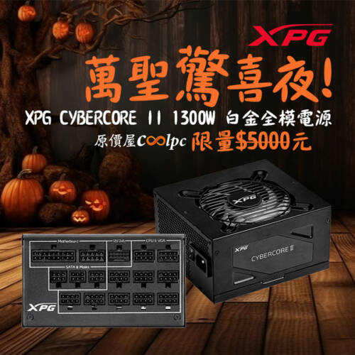 萬聖「驚」喜夜!XPG CYBERCORE II 1300W 白金全模組電源限量免五千!