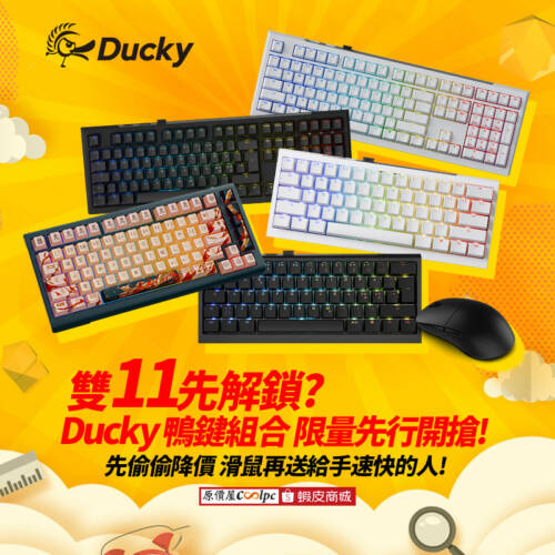 【蝦皮限定】優惠先解鎖!鴨鍵先開搶!Ducky 限量組合登場!降價、滑鼠就送給手速快的人吧!