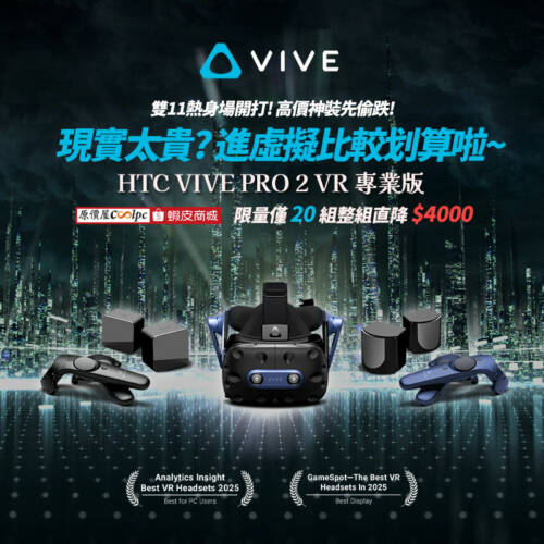 現實太貴?進入 5K/120Hz 虛擬世界比較划算啦!HTC VIVE PRO 2 VR 整組直降 4000!