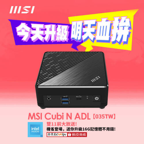 先升級再血拼!MSI Cubi N ADL 小器才神超值放送!買 4G 送 16G,升級效能不升價!