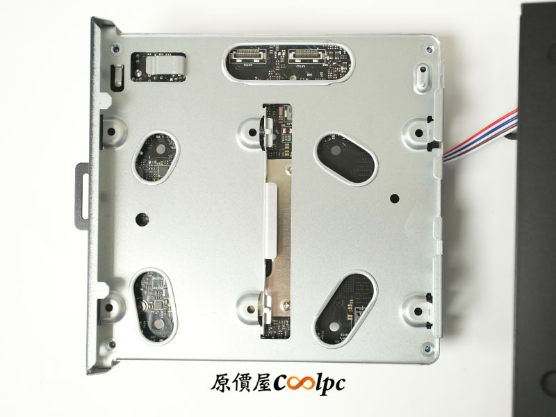 卸下主機後方螺絲後,即可將主機板托盤抽出。這類簡易的結構設計讓清潔風扇、更換記憶體或升級 M.2 SSD 變得極其便利,完全體現了微型電腦的高效率維護特色。
