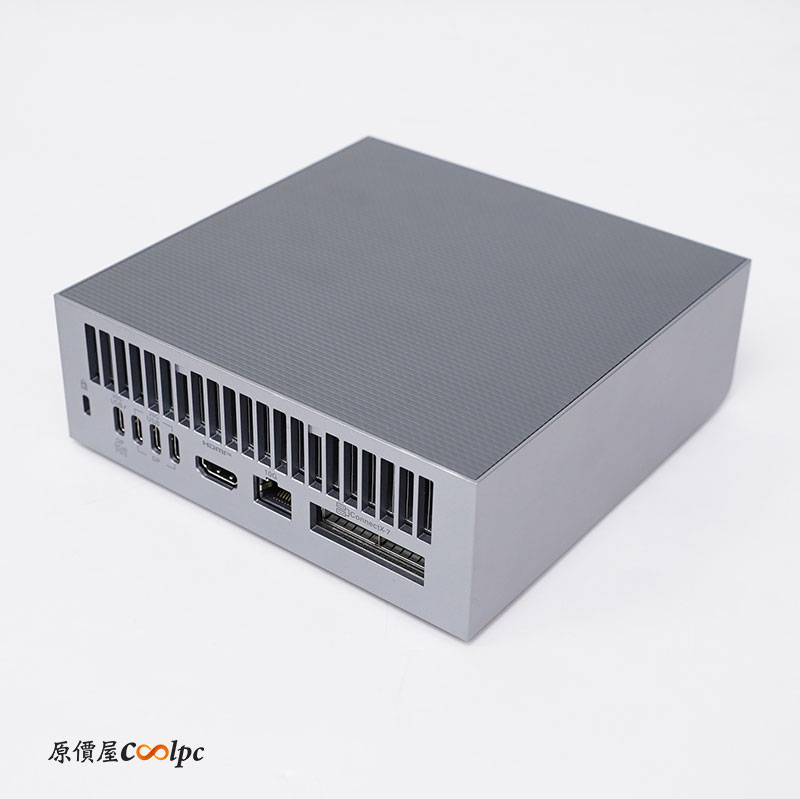 外觀特徵為垂直導風溝槽,後方還有大面積的開孔,確保高負載下依然能保持穩定,而且華碩將原開機鈕從後方移至前方位置,並且還有燈號提示!這點設計相當不錯,讓使用者知道有沒有開機運作。後方 I/O 的部分有 Kensington 鎖、1 x USB 3.2 Gen 2×2 Type-C,with PD in(180W EPR PD3.1 SPEC)、3 x USB 3.2 Gen 2×2 Type-C, 20Gbps, alternate mode (DisplayPort 2.1)、1 x HDMI 2.1、1 x 10G LAN、1 x NVIDIA ConnectX-7 SmartNIC。機身底部採開放式設計,讓玩家可以自行拆卸升級 SSD。