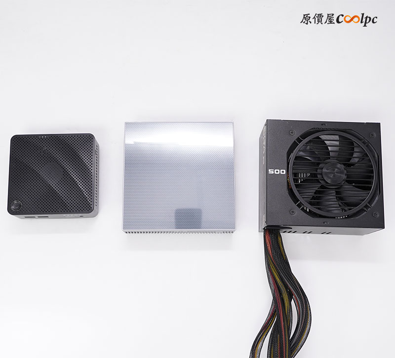 對比尺寸,由左至右分別是 MSI MiniPC、ASUS Ascent GX10 AI小主機、標準尺寸 500W 電源供應器,ASUS Ascent GX10 這台 AI 超級電腦體積濃縮到一個手掌大小,即使是兩台疊起來也不會占太多空間,而且耗電量還比