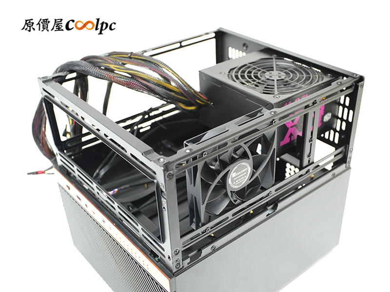 上層分艙:安裝標準 ATX 電源,主要負責為 ITX/M-ATX 主機板、CPU 以及 PCIe 擴充裝置(如顯卡或陣列卡)供電。