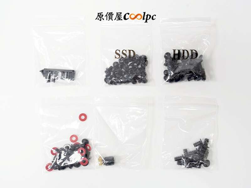 打開配件盒,內容物包含電源轉接線、後風扇轉接架、下置電源轉接架、前置電源架、說明書及螺絲包。螺絲包內有標記明確的 SSD 與 HDD 專用螺絲。其中最值得稱讚的是,針對不同電源規格(SFX/ATX),提供多種轉接支架,確保各種硬體組合都能在 N6 中自由配置。