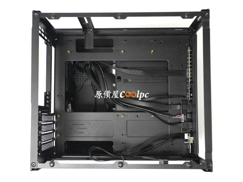 先介紹上層空間,主機板托盤,可完整支援 ITX 與 M-ATX 規格,這在 NAS 機殼中相當難得,讓玩家在選擇主機板時有更多高效能或多擴充槽的彈性。托盤的上方和下方預留走線開孔與束線固定點,方便 DIY 玩家理線,貫徹自己的 NAS 自己來的精神!