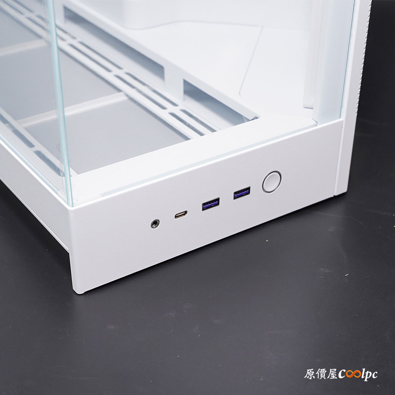 I/O 設計在機殼前方玻璃下面,有 3.5mm 、USB3.2 Gen2x2 Type-C、2 x USB3.2 Type-A。