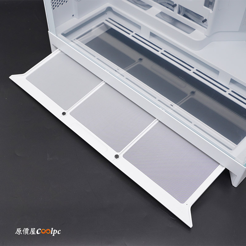 底下有一塊磁吸式防塵網,內部底下有安裝風扇或水冷的玩家,務必定期要清洗濾網否則將影響散熱效能。