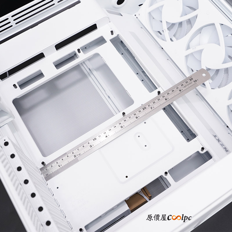 電源供應器艙最大可支援 28.5 公分長度,但建議不要超過 25 公分,還要預留空間給線材擺放。