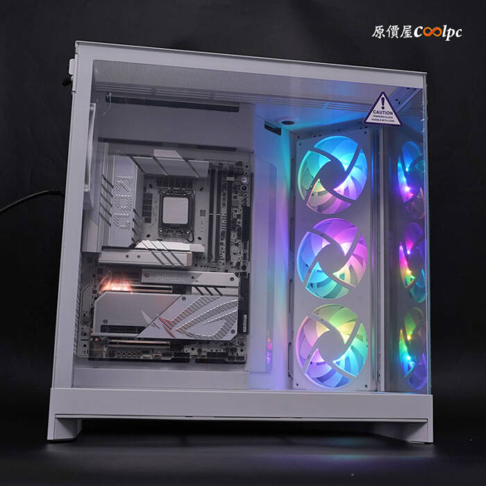 機殼正面前半部是鋼化玻璃,後半段則是斜面網孔進風設計,增加機殼空氣對流。