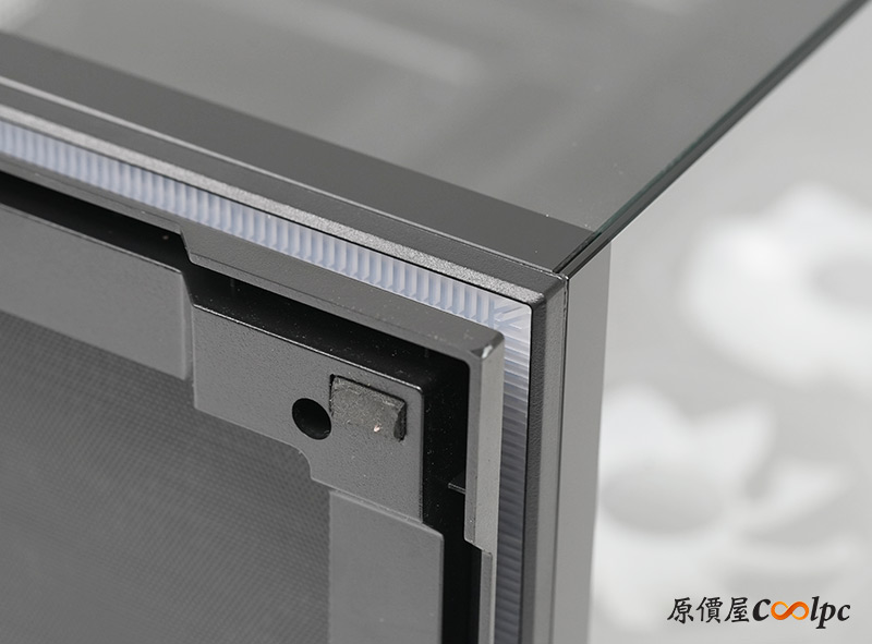 正面除了可以看透機殼內部,也能看到側風扇的側邊,特別設計成鏡面反射效果,同樣過電後會更精采喔。