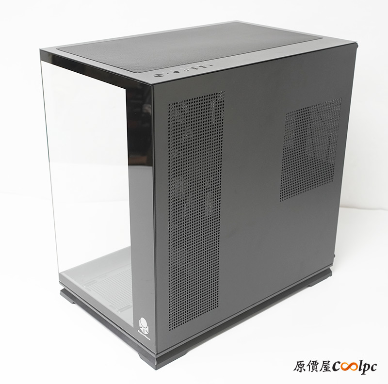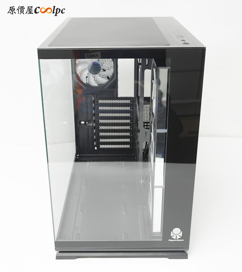 本體登場!視博通SAK280最大特色就是海景房格局,前、側都是玻璃面板設計,而且將前面的立柱拿掉,打造270°不間斷的絕佳視野,右側版針對風扇與電源供應器開孔透氣,確保散熱性能不受影響,底部機殼腳與機殼本體特別設計一個間隔,製造出機殼飄浮起來的視覺感,等底部間接照明的RGB燈亮起會更明顯,請各位看官拭目以待。