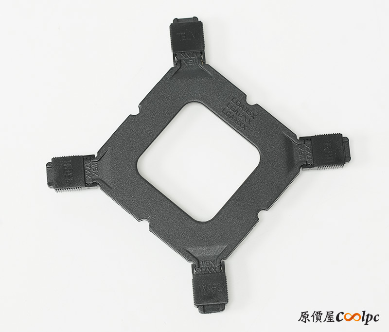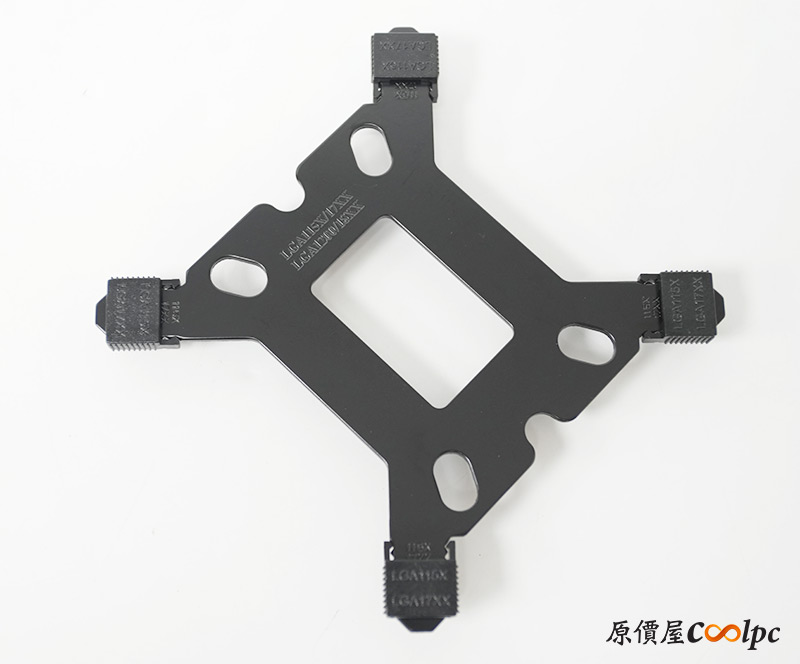 眼尖的玩家應該發現了,Intel強化背板變為塑膠材質,可能是要承受的重量變小,所以這樣就足夠啦。同樣螺絲孔位置要根據平台調整,才能確保散熱效果最佳化喔。