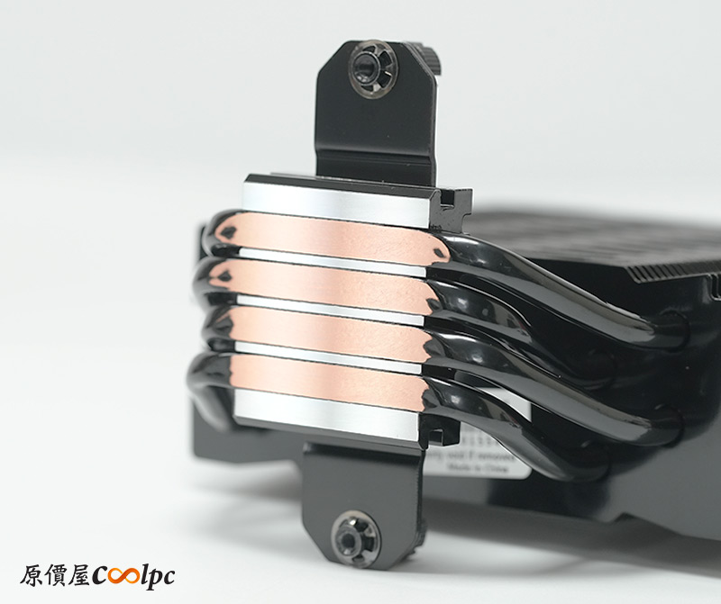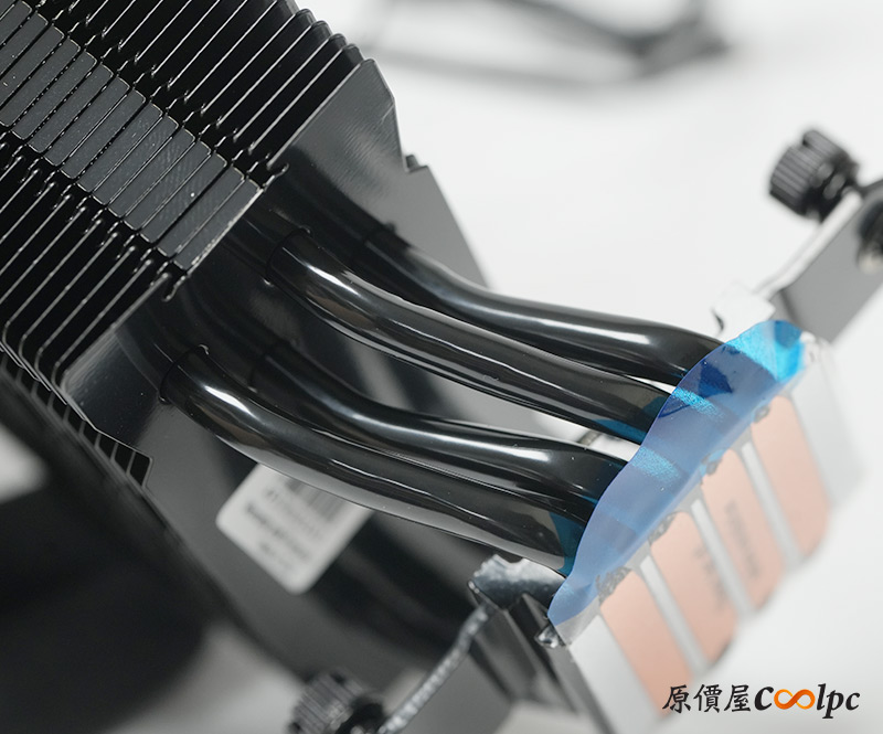 四根熱導管採直觸底座設計,可以加速將CPU熱能帶走,再進入鰭片並由風扇吹出。使用前會有一層透明膠膜必須撕除!