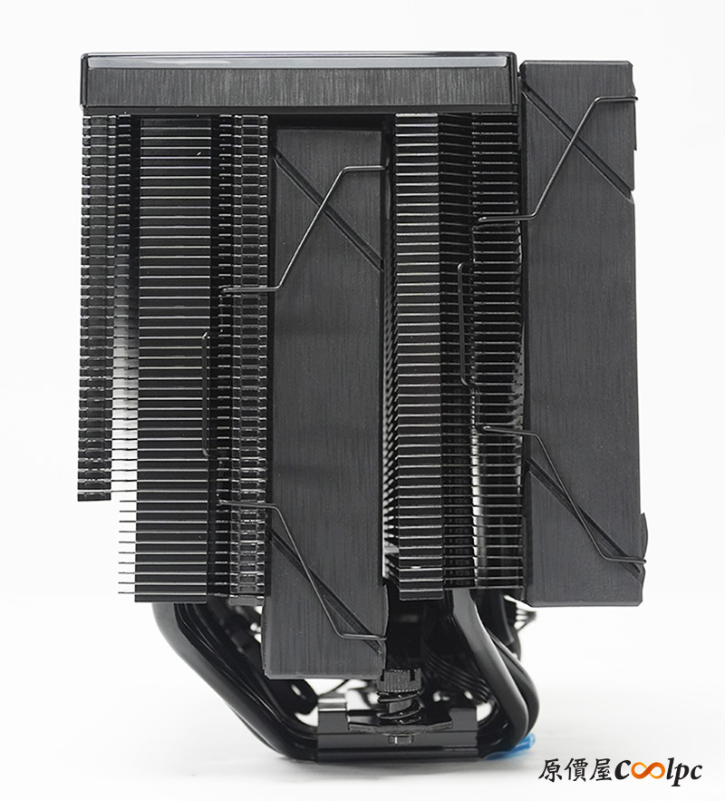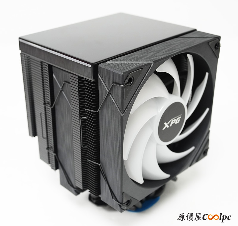 XPG MAESTRO PLUS 62DA本體登場,體積120 x 126 x 160mm(L x W x H),重量1.4KG,本身是全黑化的設計,由雙塔雙風扇組成,內部有大面積散熱鰭片,並用六支導熱管貫穿其中,再透過偏移設計減少對RAM的干涉。頂部還特別加入數位顯示面板,並輔以ARGB燈效點綴。