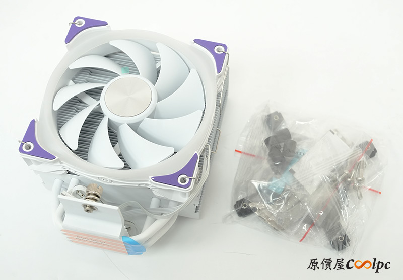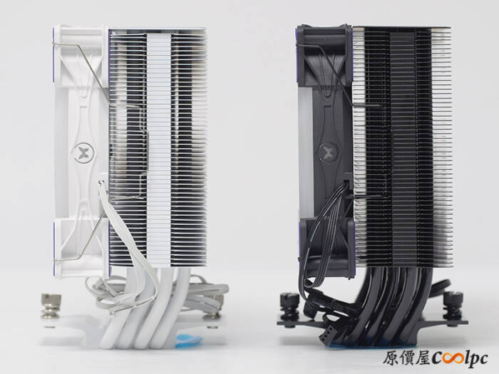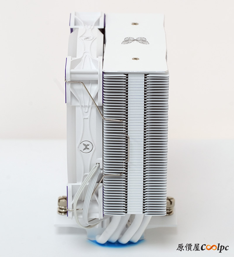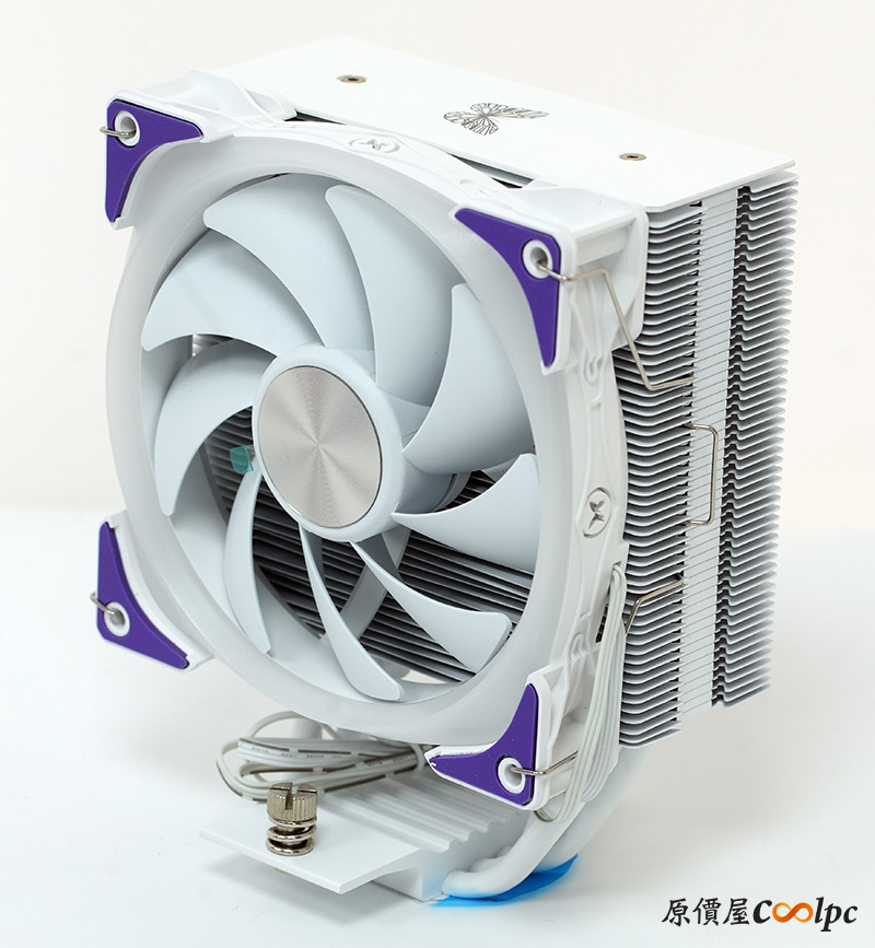 ST4 ARGB登場,白色的散熱器本體與風扇,風扇的防震膠墊還是SUPERFLOWER振華的招牌紫色,直接一個弗利沙配色XD,真是非常有記憶點。單塔單風扇設計,尺寸僅有120*70*153mm,外型小巧精美,鰭片排列的方式有交錯風格,看上去更有設計感。