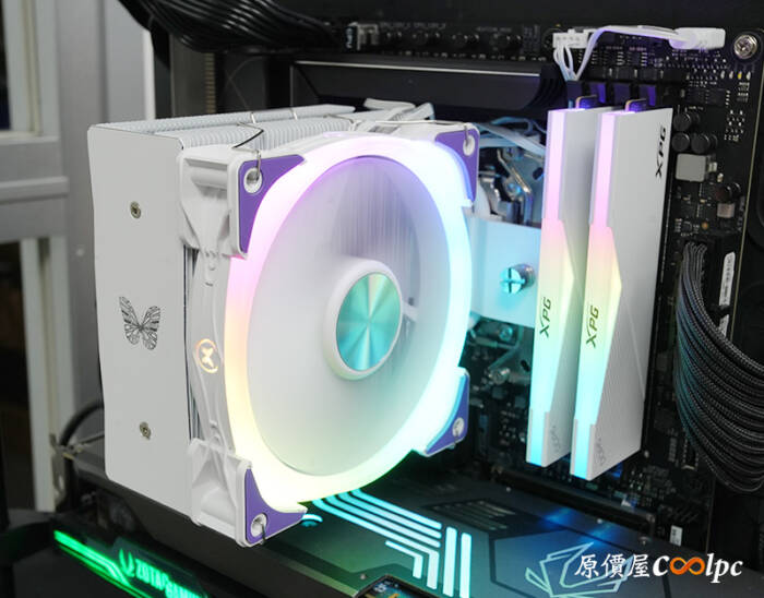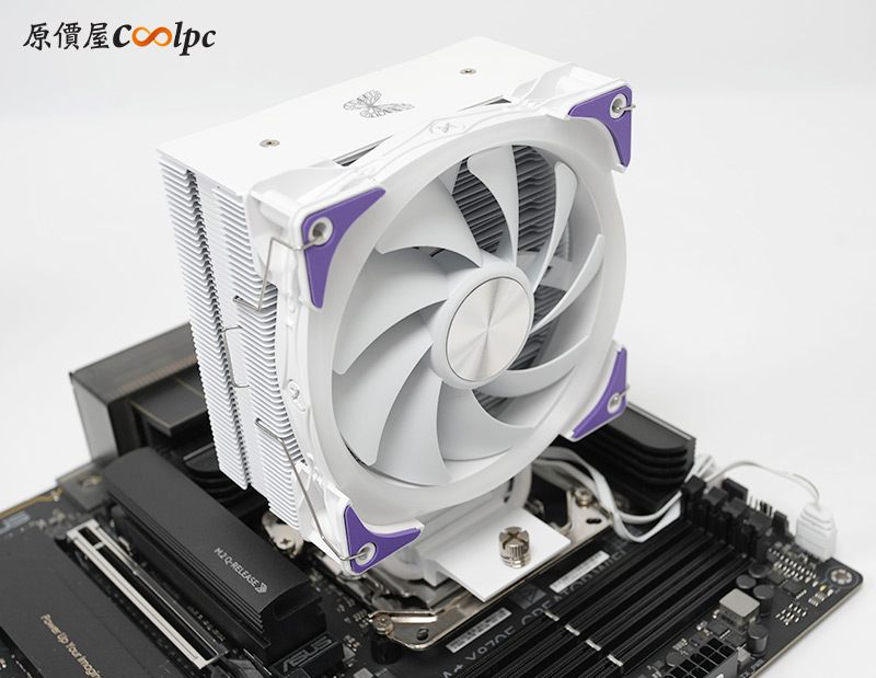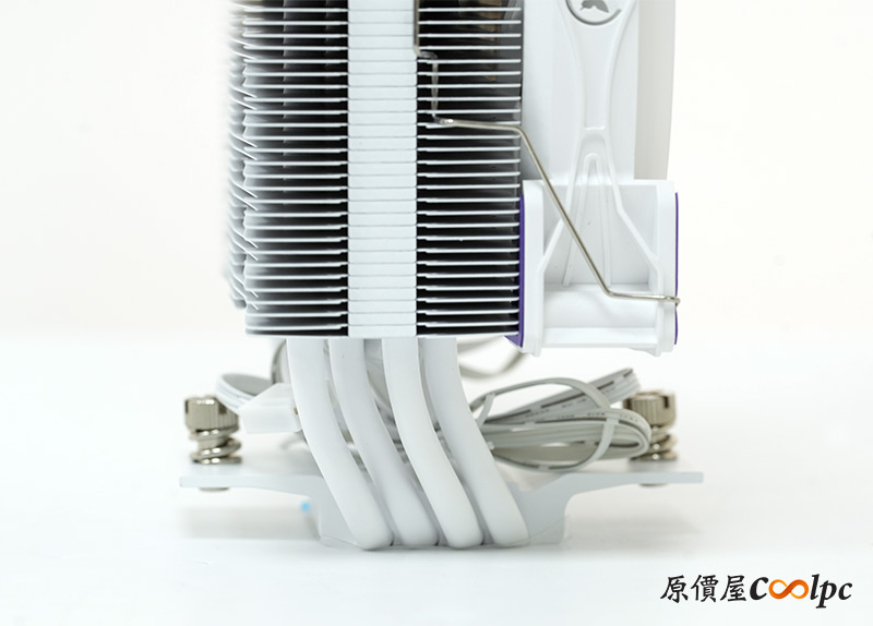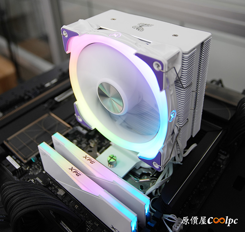 散熱器本體有偏移設計,避免影響到記憶體安裝或記憶體RGB效果,並使用4根銅導熱管傳遞熱能。