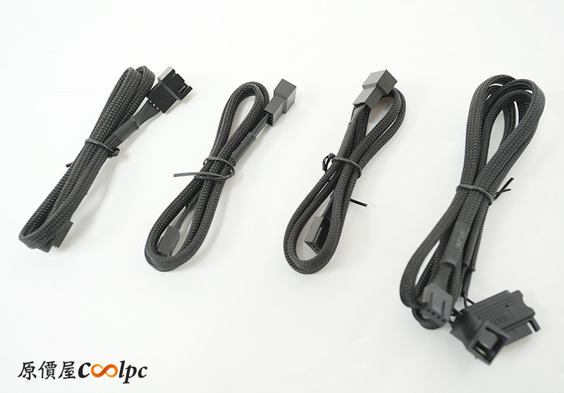 風扇電源延長線有3條,還有一條是小4Pin轉SATA供電線,3顆風扇都是採用串接的方式,最後再透過SATA電源供電。