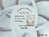 兩顆風扇選用Thermalright TL-P12W,搭載S-FDB軸承,轉速高達2000RPM,相比過去幾款PA120系列散熱器都還要高,扇葉中間印上Thermalright TL字樣,框架刻上Thermalright大寫字體,防震的膠墊也都沒少,並由小4Pin介面供電。
