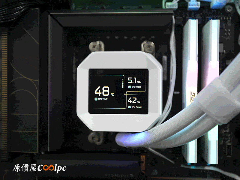 剛剛裝水冷的時候你偷看了對吧?水冷發展從無光到白光,再來有 ARGB 幻彩燈光,現在又有 LCD 顯示器…花樣越來越多!九州風神在所有元素具備的情況下,還能做出 C/P 價值!這回原價屋帶來 DeepCool LM360 WH 一體式水冷散熱器,2.4 吋 IPS 顯示器冷頭搶盡鋒頭,支援硬體監控與自訂 JPEG/PNG 圖片或 GIF/MP4 影片
