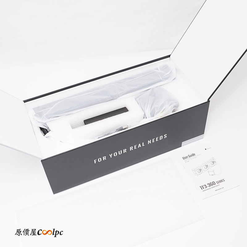 盒子採兩側掀開方式設計,水冷和配件有上方有與下面有發泡海綿保護,減少運送過程損傷。