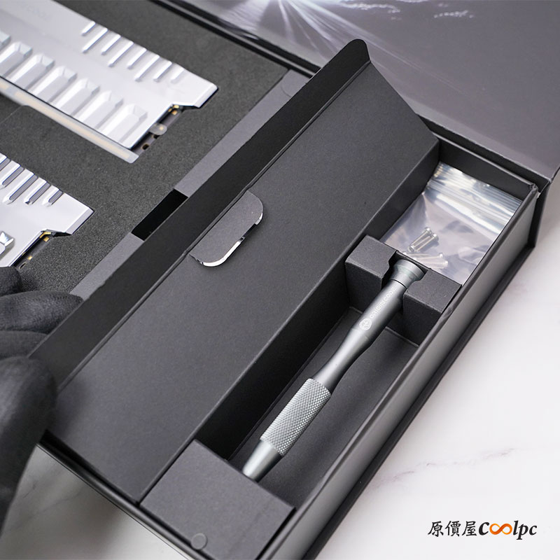 內部有擦拭布、使用說明和保固政策說明書,記憶體兩條、三風扇散熱套件以及螺絲起子配件。