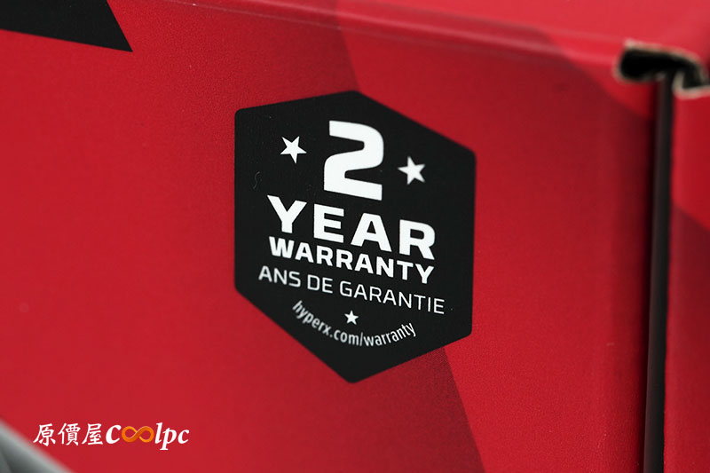 右上角則是保固標示。HyperX 提供完整保固服務,對於這種長時間佩戴、每天使用的耳機來說,多一分安心就是多一分價值。