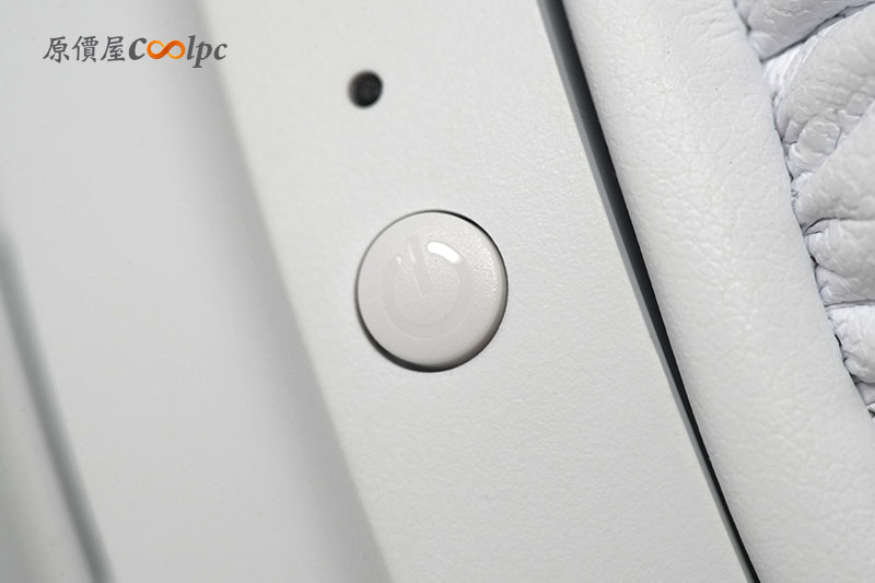 雖為全白設計,但仔細看按鈕上方,會發現立體的電源標示。