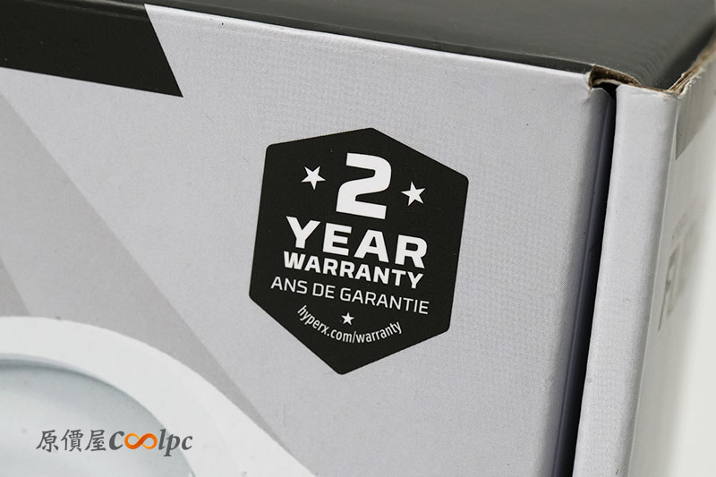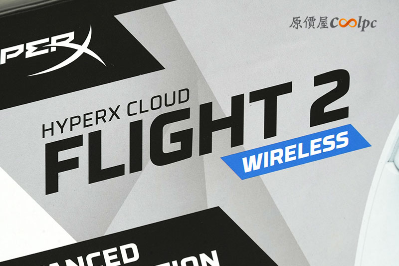 HyperX Cloud Flight 2 的型號字樣以大字體呈現,辨識度高。背景色為經典的白+灰視覺風格搭配點綴,讓整體看起來具有科技感又不會太鋪張。