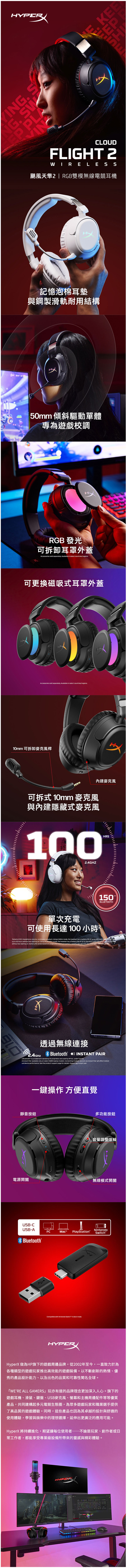 .HyperX Cloud Flight 2 無線耳麥(黑)(B5VC4AA) $4490↘$4290