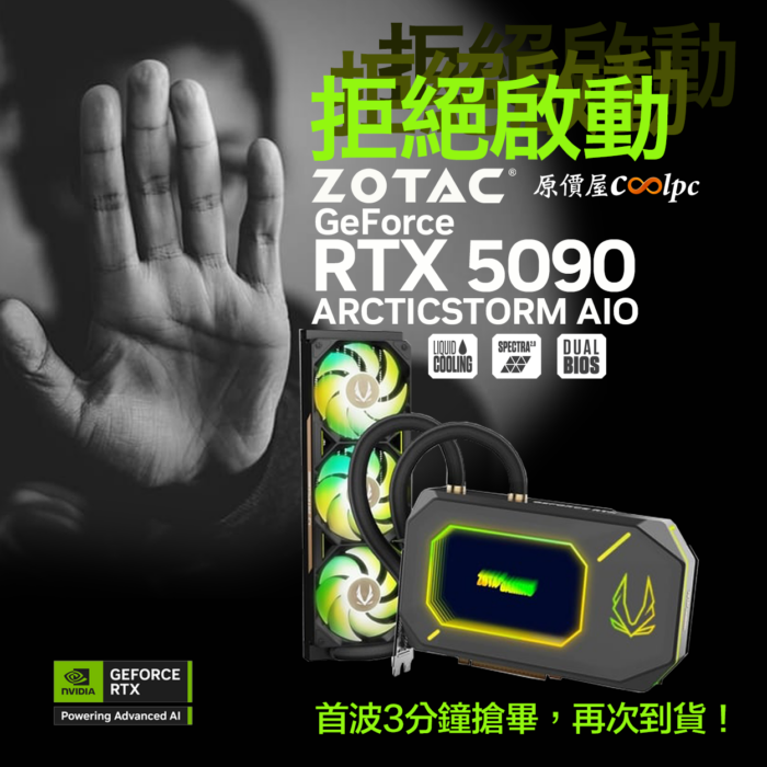 【已截止】【原價屋搶購】首波3分鐘即搶畢!再次少量到貨的ZOTAC RTX 5090 ARCTICSTORM AIO頂級水冷卡!