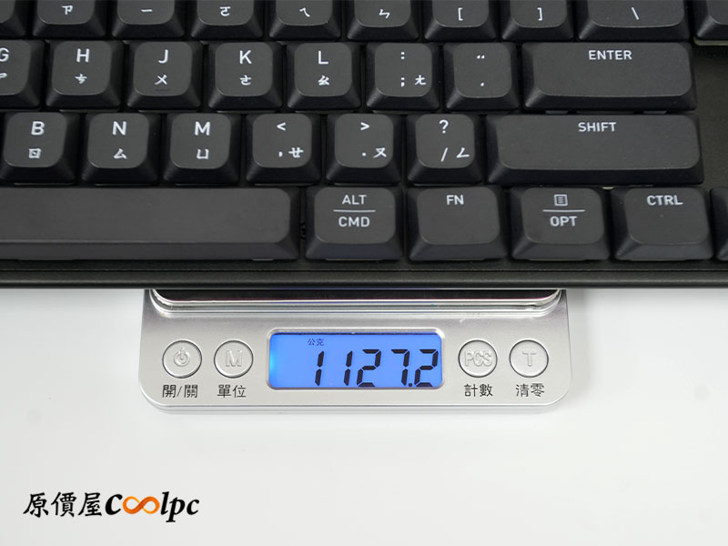整把鋁合金機身不只質感好,也超有份量!一上秤居然有 1.1 公斤!這個重量讓鍵盤在桌面上穩如泰山,就算你在激戰中狂敲猛打也絕對不會給你位移!