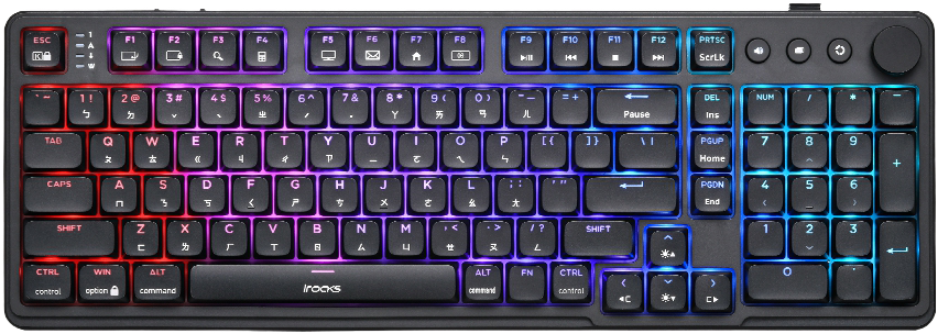 Irocks K107R 三模機械式鍵盤(黑色)/有線/無線/藍芽/插拔軸/矮青軸/中文/Rgb, $3290