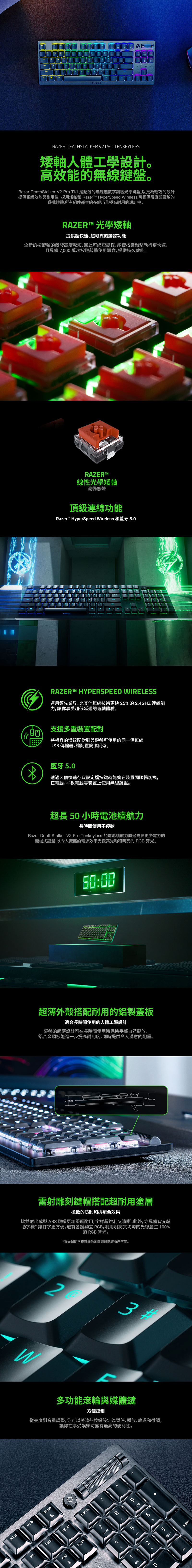 【活動品項】:Razer DeathStalker V2 Pro TKL 三模鍵盤/有線/無線/藍牙/紅軸/中文/多功能滾輪+媒體鍵/Rgb, $3490