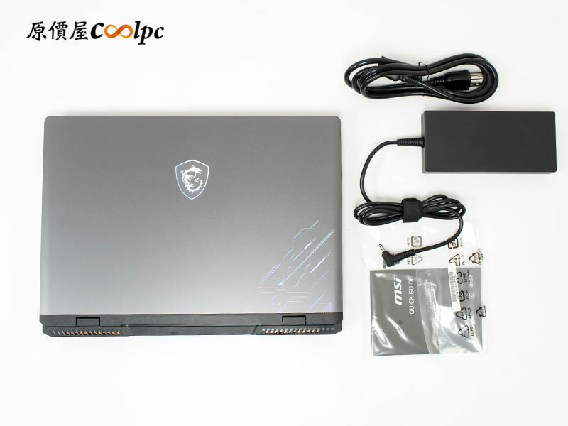 內部包含筆電本體、說明書、電源線和充電頭。