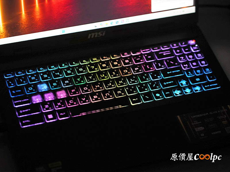 較暗環境中鍵盤燈效展示。