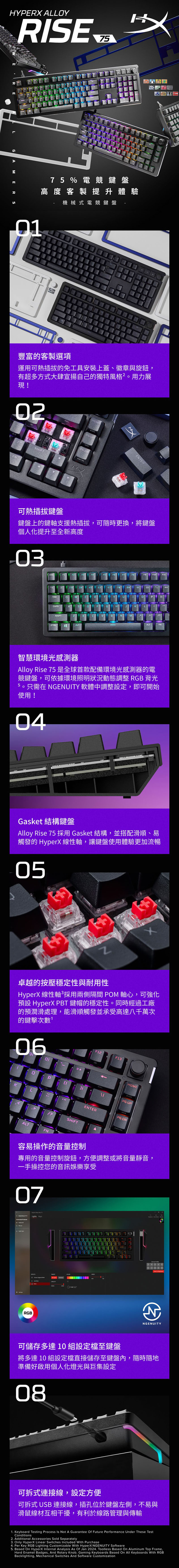 打得好不稀奇,能邊贏邊吃才叫享受!現在 HyperX 不只要帶你拿下勝利,只要入手任一款指定 HyperX 鍵盤或滑鼠,就送你市價 $990 的西堤牛排禮券一張,數量有限、送完為止!用一客牛排犒賞自己的連勝,用美味畫下完美收場!這次活動中的 Alloy Rise 機械式鍵盤 採用鋁合金上蓋與細緻浮雕質感,加上可自訂 RGB 燈效與多功能音量滾輪,讓每一次敲擊都穩定俐落,操作也成為十足的享受!如果你偏好更簡潔俐落的配置,Alloy Rise 75 絕對是桌面控的理想選擇!75% 配列保留完整方向鍵與功能鍵,空間更自由,效率與美感兼具。