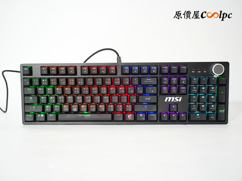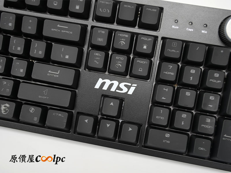 軸體看起來並不是 Cherry、TTC、Gateron 這類常見大牌,推測是微星自家客製的紅軸,採用 5-pin 設計,和市面上大多數鍵盤都能相容。手感部分小編體感大約在 45g 左右,比一般紅軸更 Q 彈一些,敲起來挺舒服的。