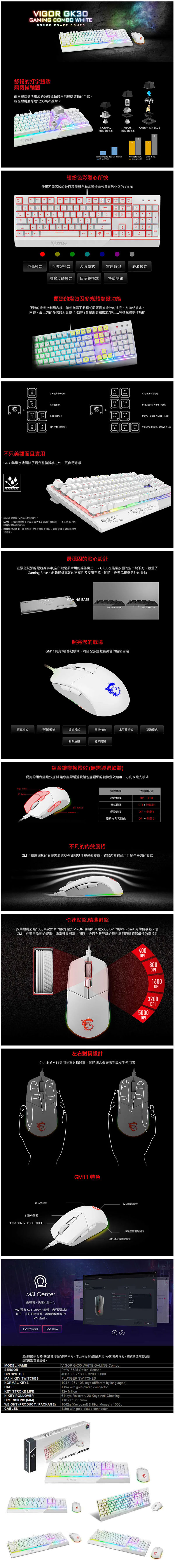 .MSI Vigor Gk30 Combo White Tc 鍵盤滑鼠組(白) $1790