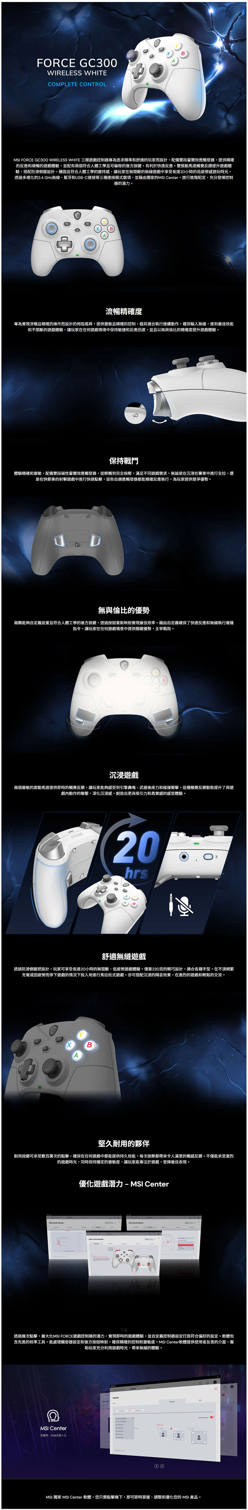 .MSI Force GC300 W White 無線搖捍控制器遊戲手把(白) $1990