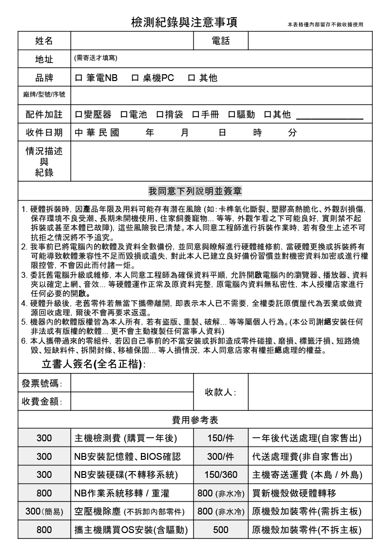 人為故障若原廠可修復,除了予您回報代理商報修價格外,運費來回都必須予您收取(您寄來自付運費,我們寄回以運費到付方式寄件)