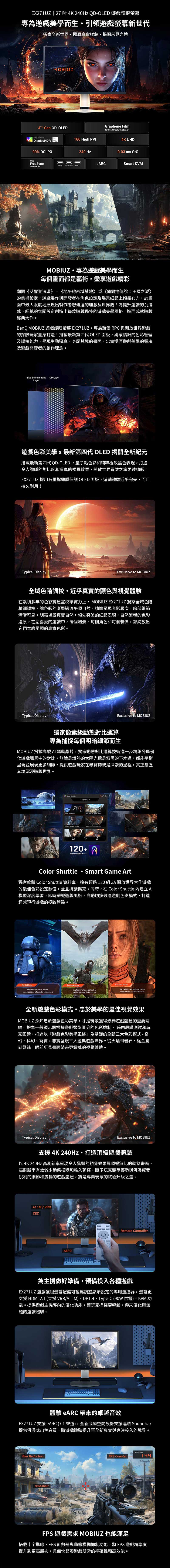 BenQ MOBIUZ EX271UZ〈2H1P1C/OLED/240Hz/HDR400/HDMI 2.1/白色〉,$36888↘$32888